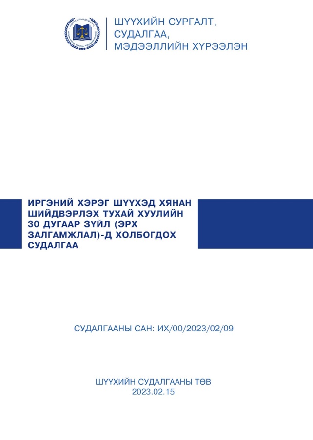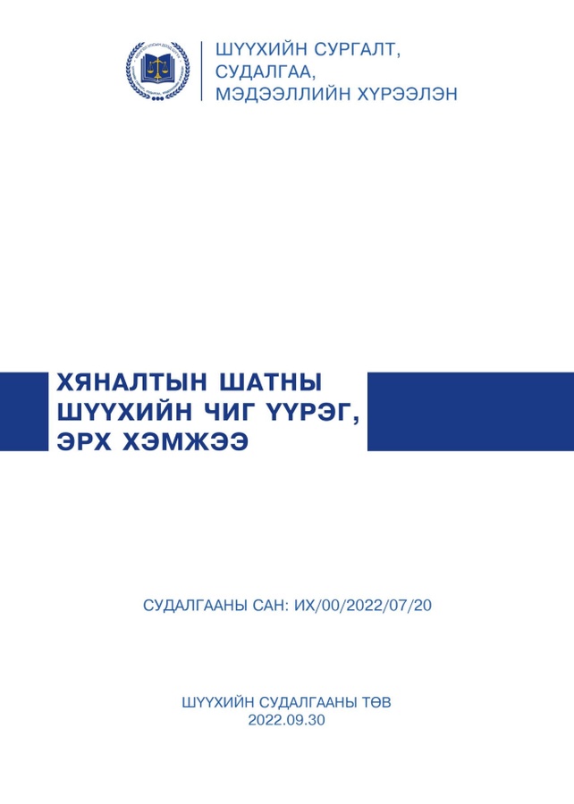 МОНГОЛЫН ШҮҮХ, ЭРХ ЗҮЙ СУДЛАЛ