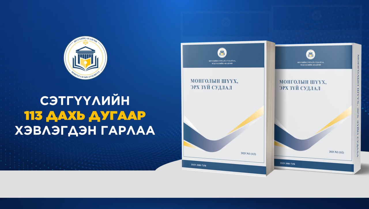 Шүүхийн сургалт, судалгаа, мэдээллийн академиас улирал тутам эрхлэн гаргадаг “Монголын шүүх, эрх зүй судлал” сэтгүүлийн 2025 оны гуравдугаар улирлын шинэ дугаар хэвлэгдэн гарлаа.