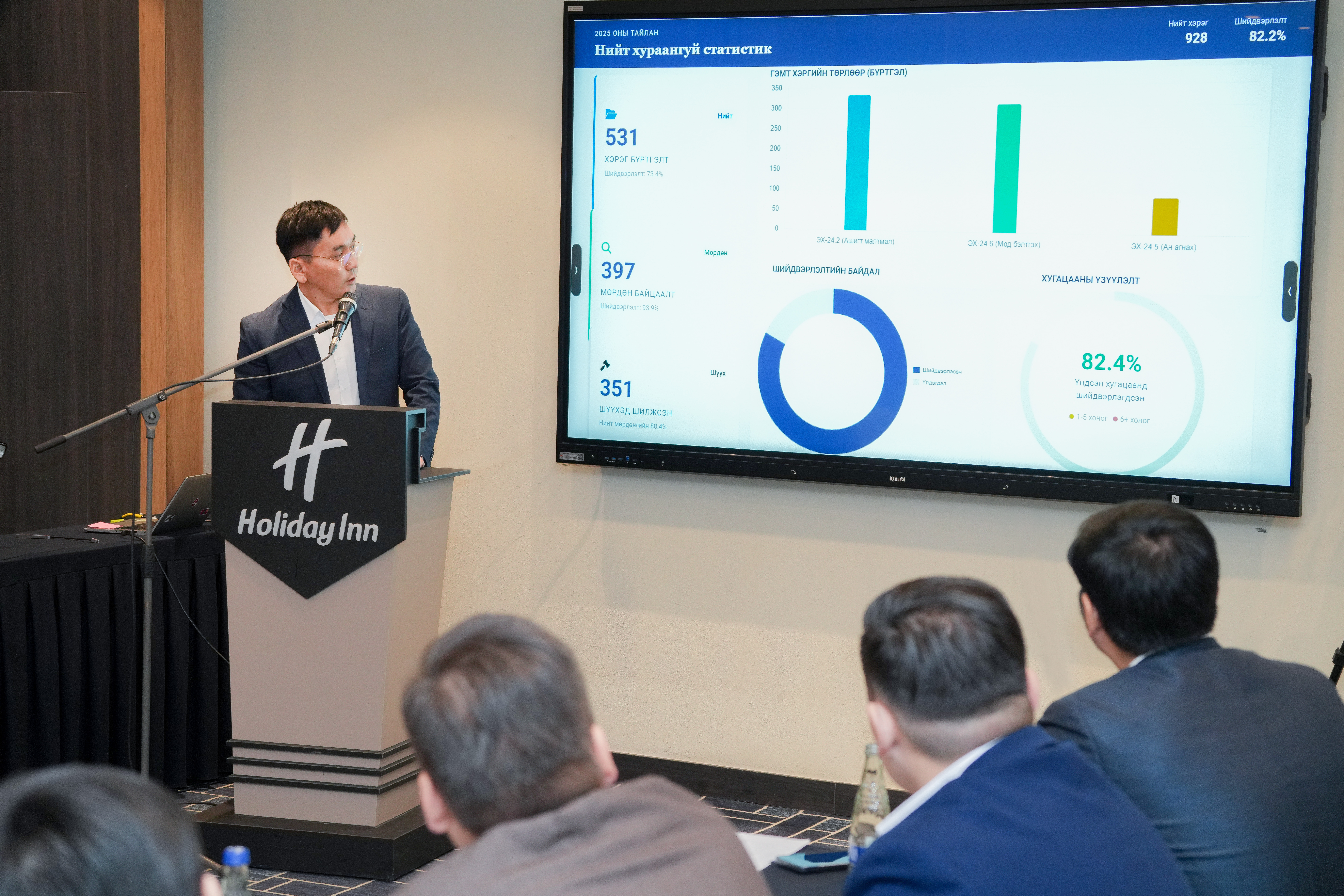 Мөн Нийслэлийн прокурорын газрын Зөрчил, эрүүгийн шийдвэр гүйцэтгэх ажиллагаанд хяналт тавих хэлтсийн хяналтын прокурор М.Сансарсайхан болон Экологийн цагдаагийн албаны Захиргааны удирдлагын хэлтсийн ахлах мэргэжилтэн Д.Хосбаяр нар хүрээлэн байгаа орчны эсрэг гэмт хэргийн шийдвэрлэлтийн байдал, дээрх төрлийн гэмт хэргийг илрүүлэх, мөрдөн шалгахад тулгарч буй хүндрэл бэрхшээлийг тодорхойлсон судалгааны үр дүнгээ танилцуулав.
