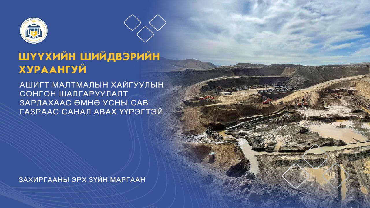 АШИГТ МАЛТМАЛЫН ХАЙГУУЛЫН СОНГОН ШАЛГАРУУЛАЛТ ЗАРЛАХААС ӨМНӨ УСНЫ САВ ГАЗРААС САНАЛ АВАХ ҮҮРЭГТЭЙ