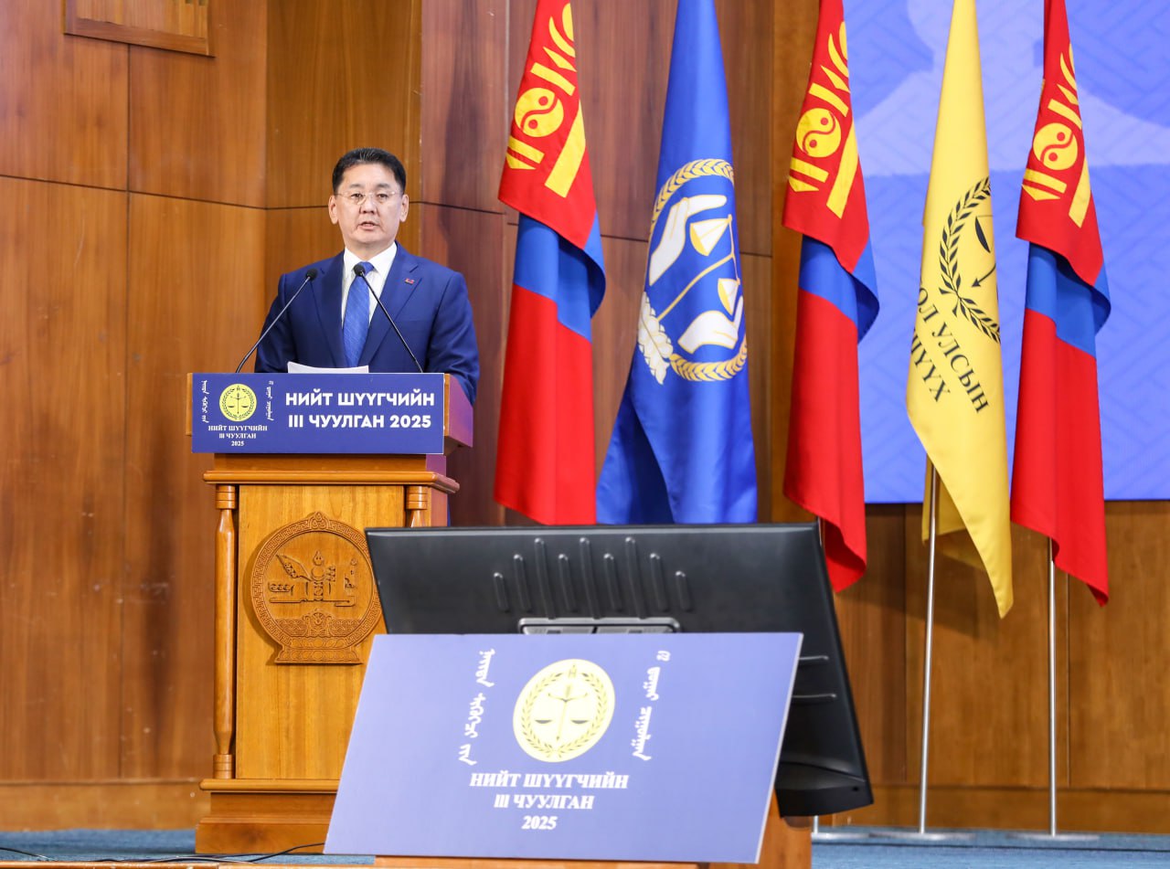 Монгол Улсын Ерөнхийлөгч У.Хүрэлсүх нийт шүүгчдийн чуулганд мэндчилгээ дэвшүүлж, шүүхийн шинэтгэлийг тууштай үргэлжлүүлэн хэрэгжүүлэхийн зэрэгцээ шүүгчийн хараат бус байдал, ёс зүй, мэргэжлийн чадварыг эрхэмлэн дээдлэх нь нэн чухал болохыг онцлон тэмдэглэж, чуулганы үйл ажиллагаанд амжилт хүслээ.
