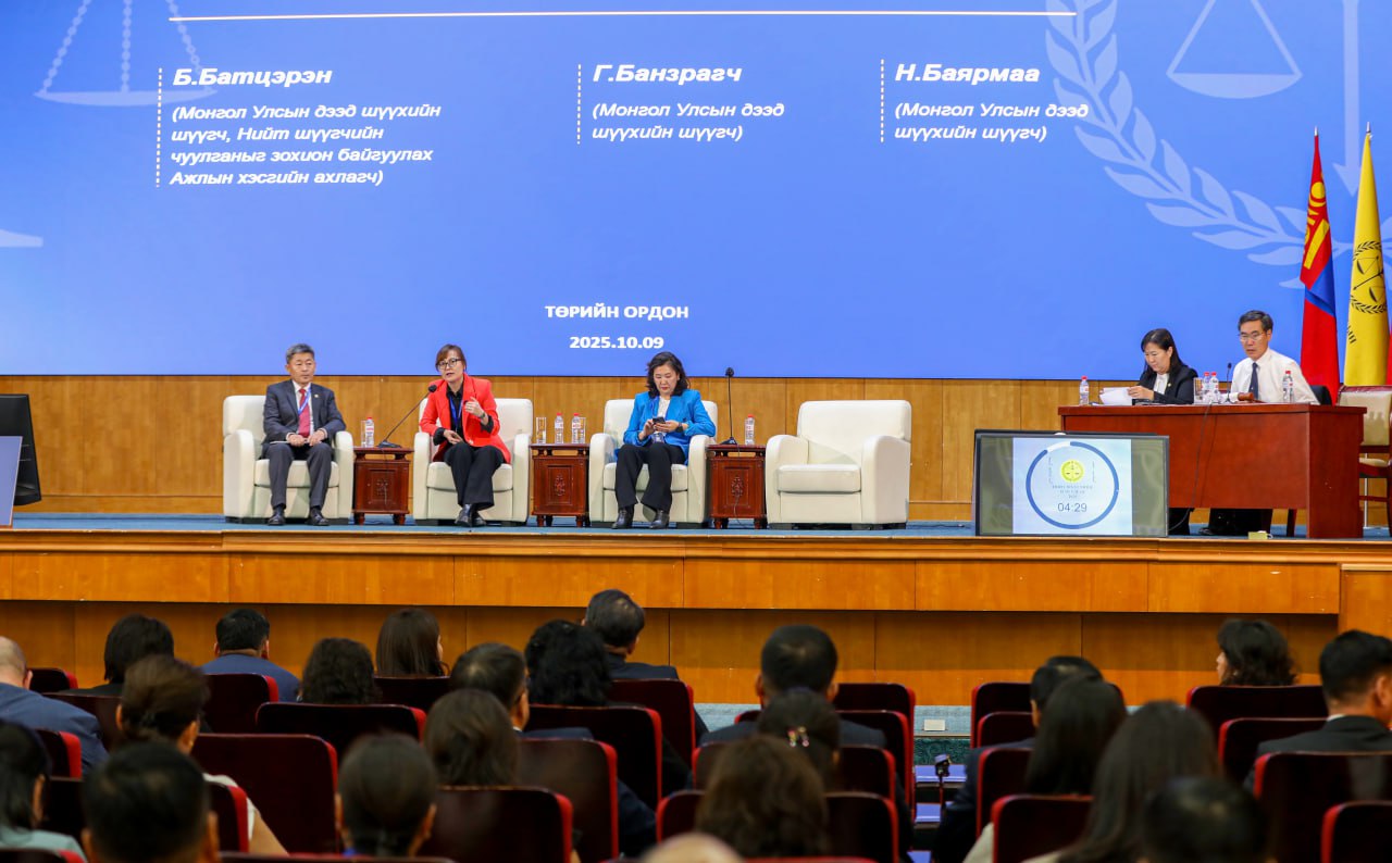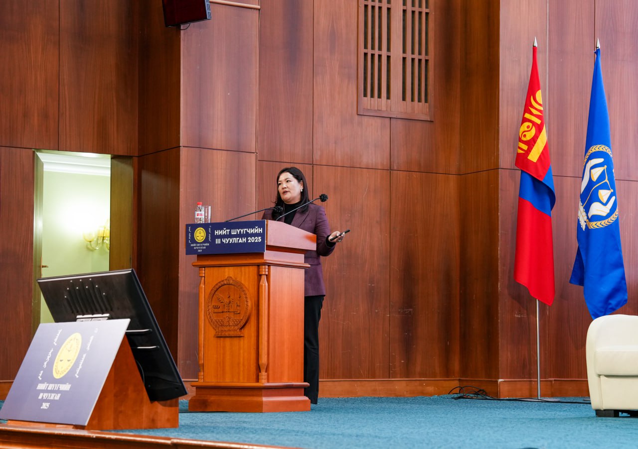 Монгол Улсын Дээд шүүхийн Ерөнхий шүүгч Д.Ганзориг “Тогтолцооны шинэтгэлээс чанарын дэвшил рүү” сэдвээр илтгэл танилцуулав. Илтгэлдээ, “Академик болон практик судалгаа, шинжилгээнд суурилсан шүүхийн шийдвэр гаргах ажиллагаа нь эрх зүйн хөгжлийг түүчээлэх суурь гэдэг нь эргэлзээгүй үнэн. Шүүхийн академиас 2021-2025 онд 229 судалгааг эрхлэн гүйцэтгэж, 155 дотоод сургалт зохион байгуулж, давхардсан тоогоор 13,441 шүүгч хамрагдаад байна. Өнгөрсөн 2 жилд 9 шүүгч-судлаач шалгаран ажиллаж, 14 судалгааны тайлан нийтлүүлсэн. Шүүгч-судлаач нар судалгааны арга зүйд суралцаад зогсохгүй өөрсдийн практик туршлагаа бусадтай хуваалцаж Шүүхийн академийн хүний нөөцийг чадавхжуулахад харилцан өгөөжөө өгч байна” хэмээн онцлов.