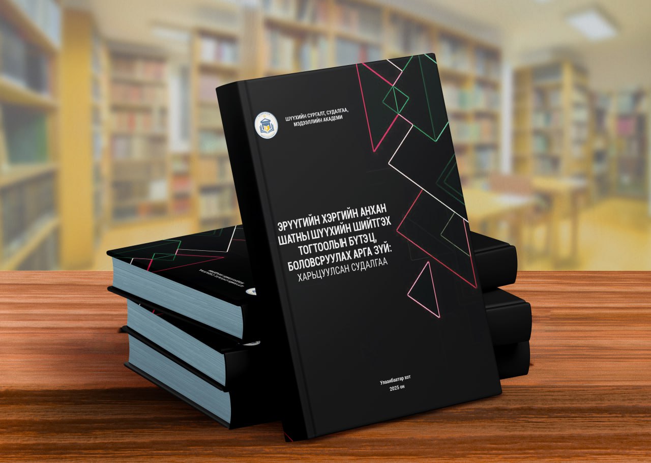 Шүүхийн сургалт, судалгаа, мэдээллийн академиас бие даасан судалгааны 26 дахь бүтээл болох “Эрүүгийн хэргийн анхан шатны шүүхийн шийтгэх тогтоолын бүтэц, боловсруулах арга зүй” сэдэвт харьцуулсан судалгааны бүтээлийг эрхэм шүүгч, хуульч, судлаач, эрх зүйч нарт зориулан гарын авлага болгон гаргалаа.