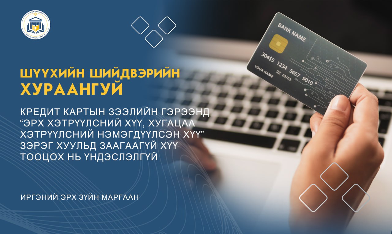 КРЕДИТ КАРТЫН ЗЭЭЛИЙН ГЭРЭЭНД “ЭРХ ХЭТРҮҮЛСНИЙ ХҮҮ, ХУГАЦАА ХЭТРҮҮЛСНИЙ НЭМЭГДҮҮЛСЭН ХҮҮ” ЗЭРЭГ ХУУЛЬД ЗААГААГҮЙ ХҮҮ ТООЦОХ НЬ ҮНДЭСЛЭЛГҮЙ