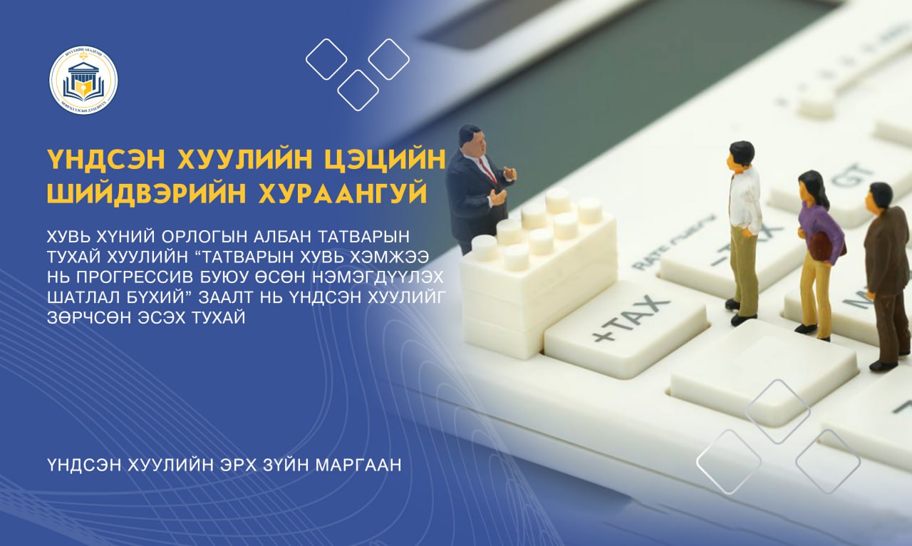 ХУВЬ ХҮНИЙ ОРЛОГЫН АЛБАН ТАТВАРЫН ТУХАЙ ХУУЛИЙН “ТАТВАРЫН ХУВЬ ХЭМЖЭЭ НЬ ПРОГРЕССИВ БУЮУ ӨСӨН НЭМЭГДҮҮЛЭХ ШАТЛАЛ БҮХИЙ” ЗААЛТ НЬ ҮНДСЭН ХУУЛИЙГ ЗӨРЧСӨН ЭСЭХ ТУХАЙ