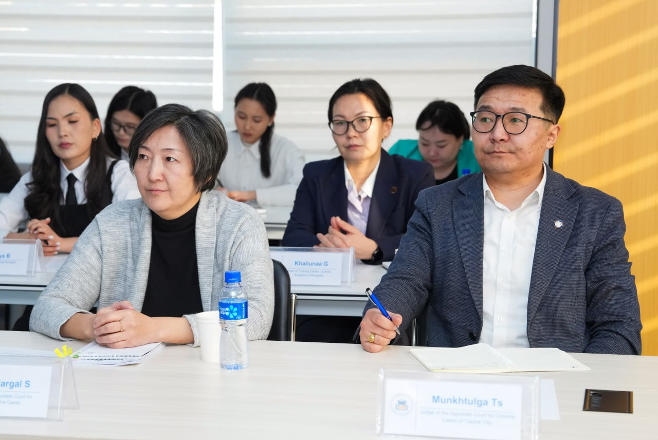 Сургалтад Шүүхийн сургалт, судалгаа, мэдээллийн, академийн шүүгч-сургагч багш, Ерөнхий шүүгч, анхан шатны шүүхэд шинээр томилогдсон шүүгч нарын төлөөлөл, тус академийн Сургалтын төвийн дарга Г.Халиунаа болон сургалтын менежерүүд оролцож байна.